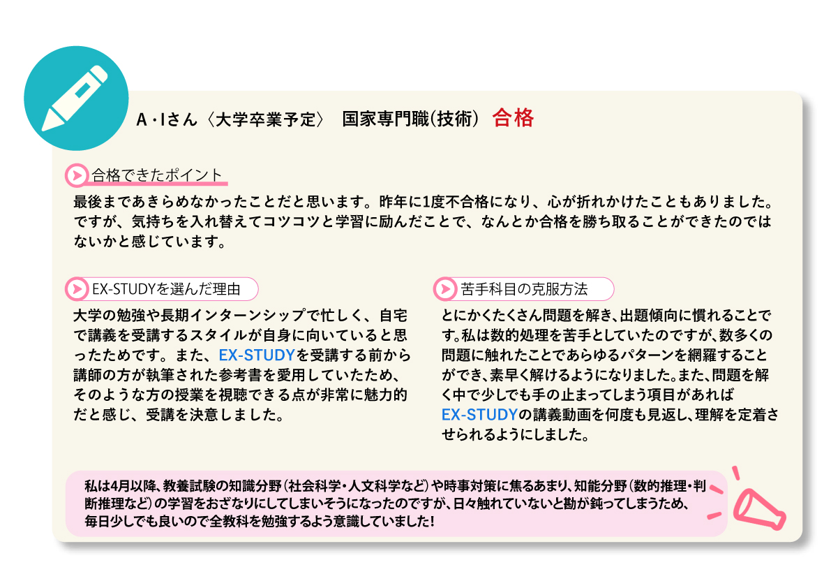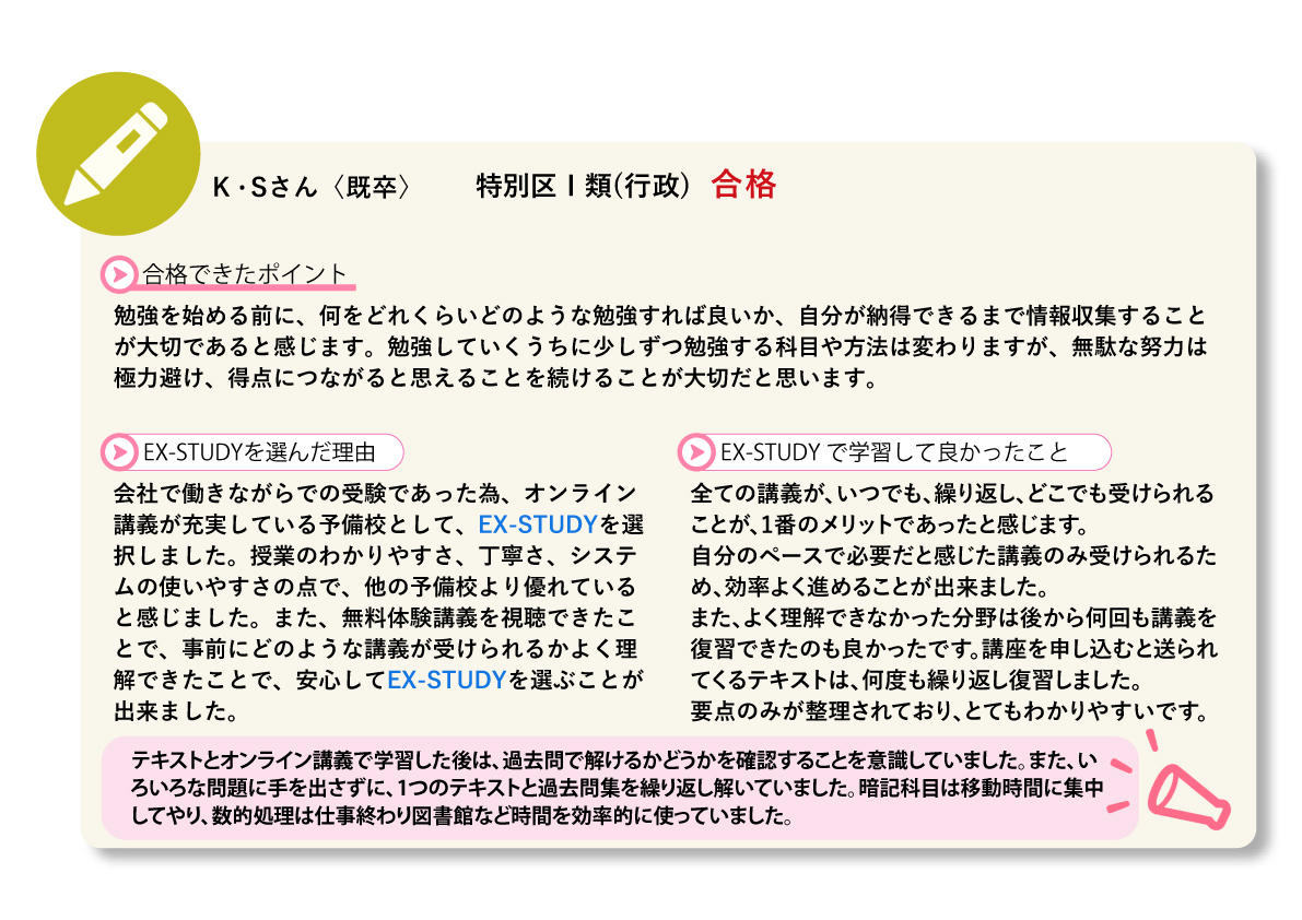 <EX-STUDY公務員講座 合格体験記>